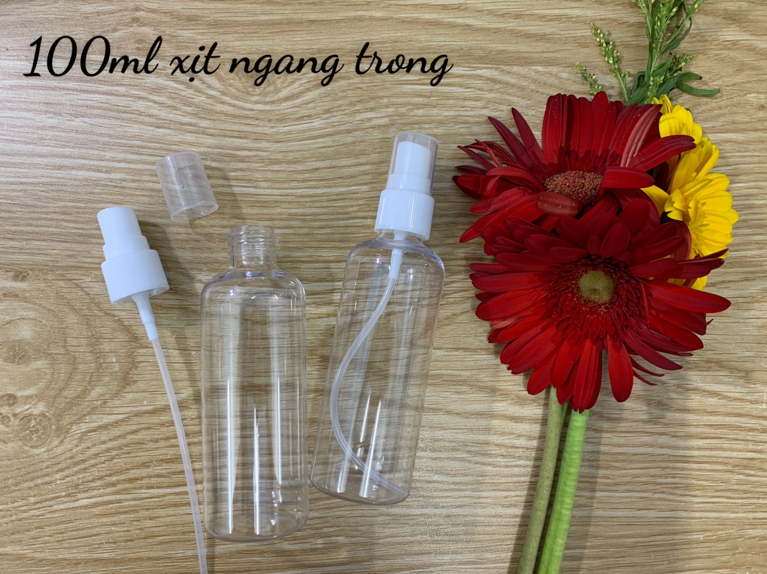 Để nắm bắt yêu cầu của khách hàng ngoài mẫu chai nhựa 100ml xịt phun sương thân trắng sữa chúng tôi còn cung cấp thêm mẫu mới chai nhựa 100ml xịt PET TRONG nhằm mục đích đa dạng mẫu mã cho khách hàng lựa chọn.