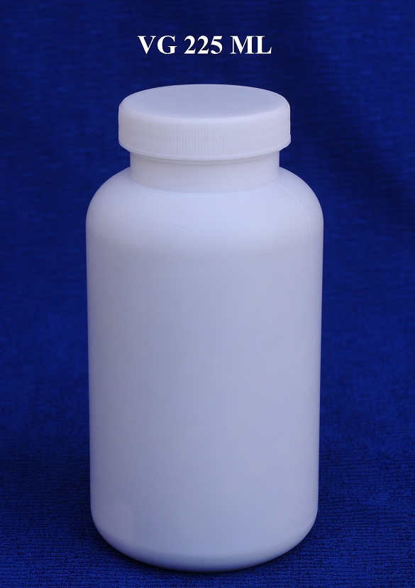 THÔNG TIN SẢN PHẨM: - Chai thuốc viên VG 225 ml gồm thân + nắp + màng seal. - Nguyên liệu: HDPE - Thể tích : 225 ml.