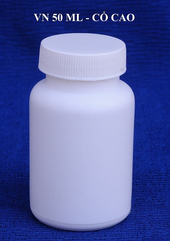 THÔNG TIN SẢN PHẨM: - Bộ chai thuốc viên VN cổ cao gồm thân + nắp - nguyên liệu: HDPE - Thể tích : 50 ml