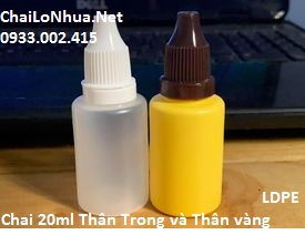 Chai nhựa nhỏ giọt 20ml có 2 màu đặc trưng là : thân trong và thân vàng.
